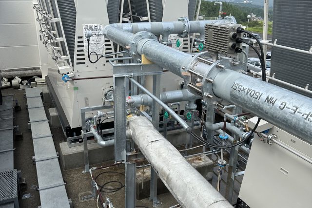 熱源更新に伴い、チラー2台、冷却水配管往還を更新させて頂きました。